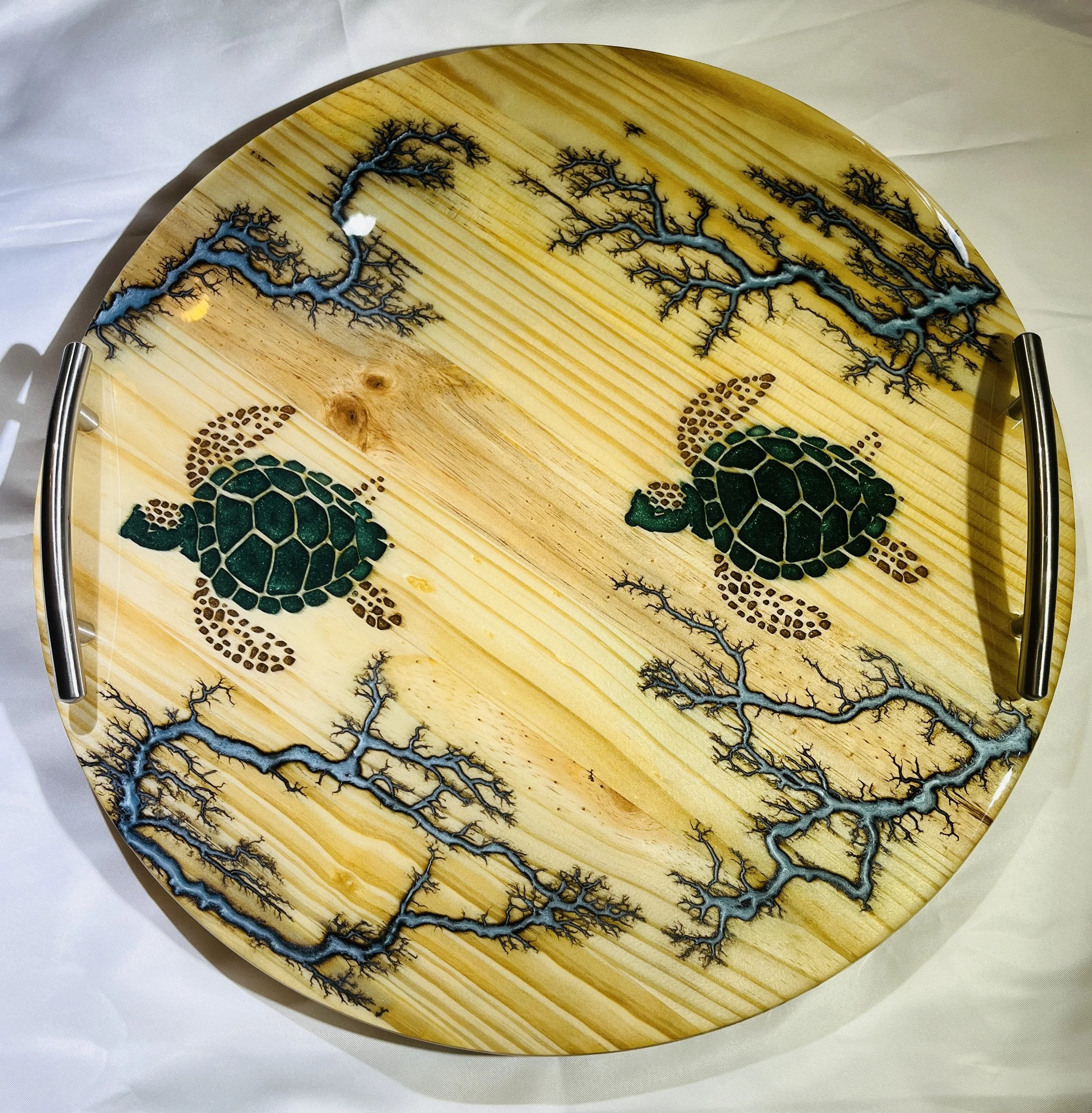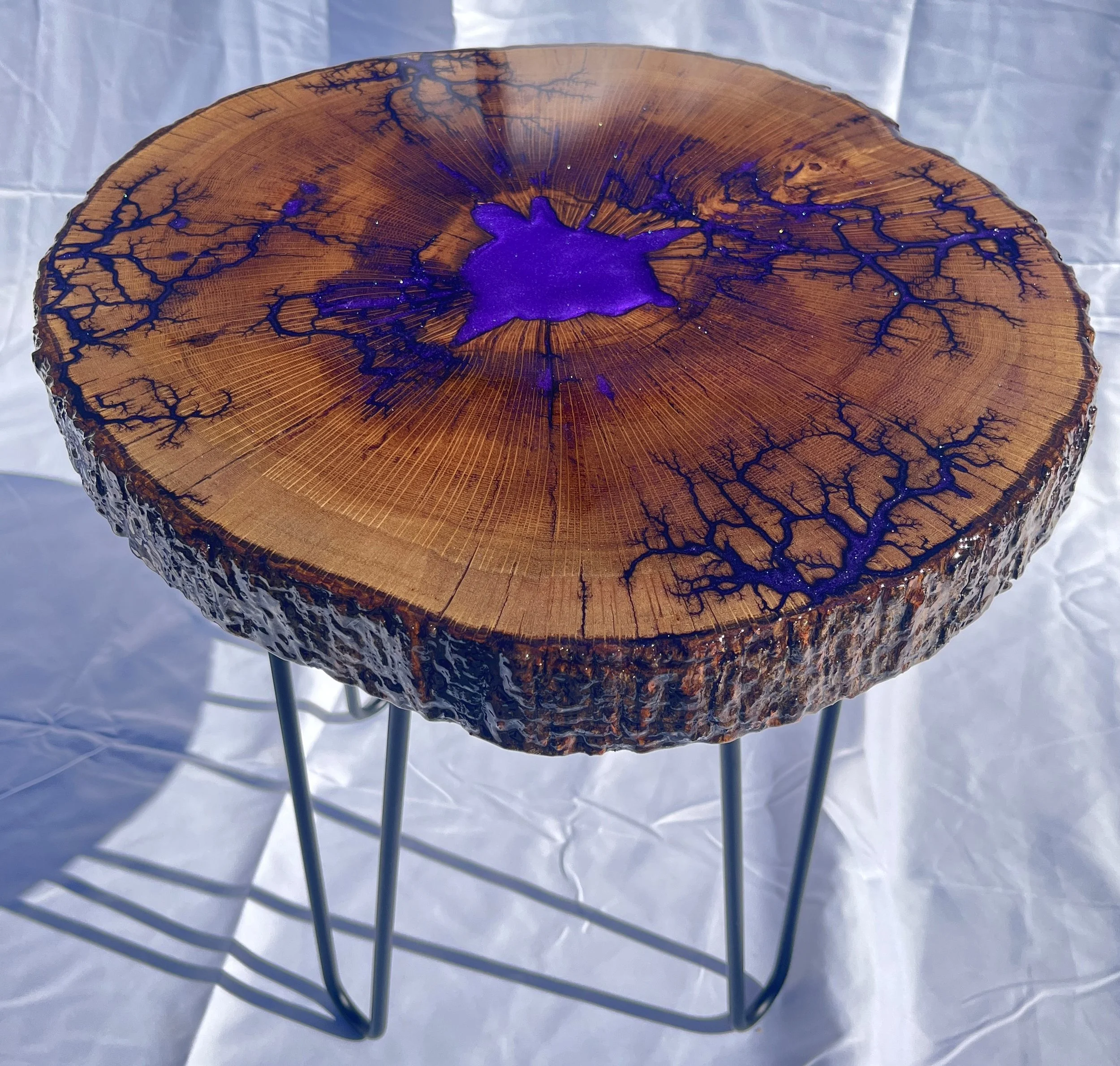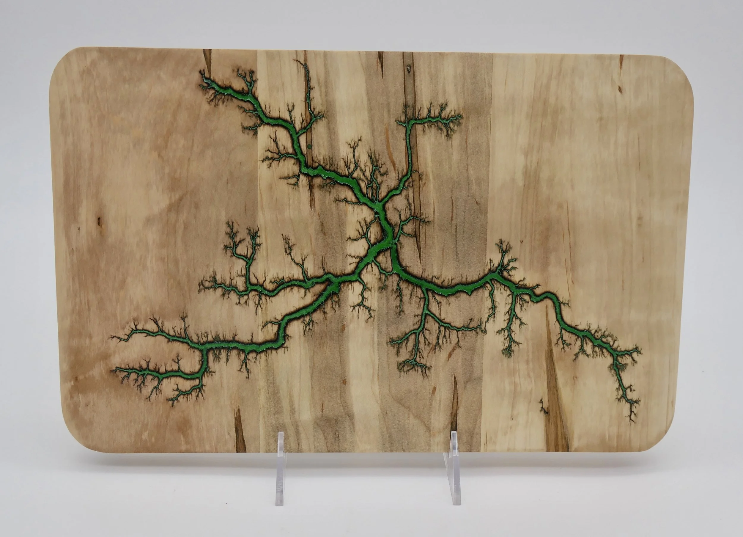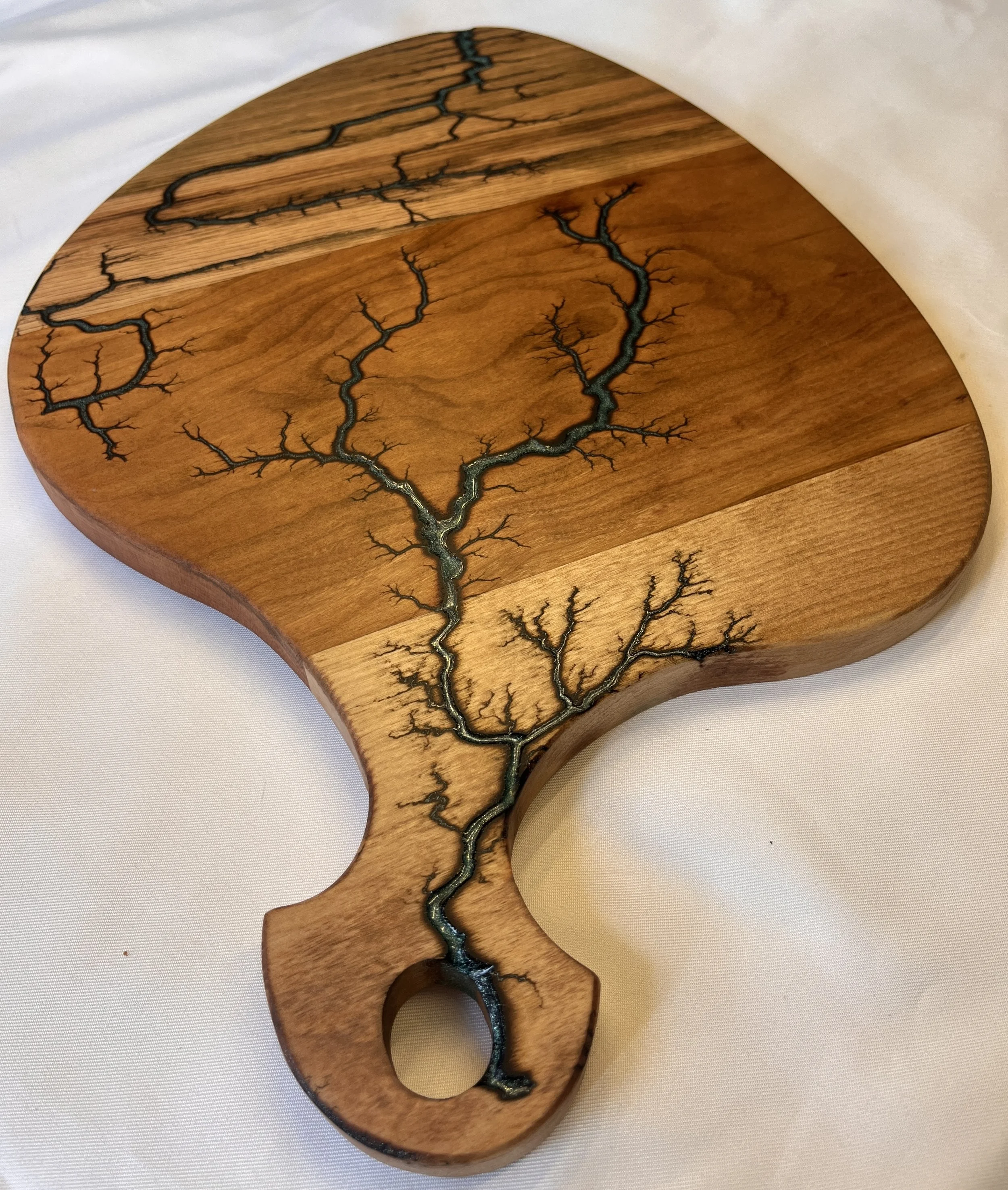 It all started after seeing a video on YouTube of a person burning amazing patterns in wood with electricity (Fractal Burning also called Lichtenberg). That was it, I was sold, I needed to figure out how to do this. I did my research, homework and understood the risk, after all this could kill you if your not careful. I built a safe burning rig and purchased safety equipment that allowed me to burn without some of the risk. I started my first burns in 2018, it honestly took me at least a year of experimentation before I was burning what I would consider artful burns. I also decided to experiment with Epoxy within the burns to both enhance and add to the beauty of the piece. One of my other passions has been experimenting with new woods, I love hard and exotic woods from around the world. It is especially interesting to see how they will burn for the first time. You will see many different kinds of woods in my pieces. Each one is unique and not two are exactly the same.